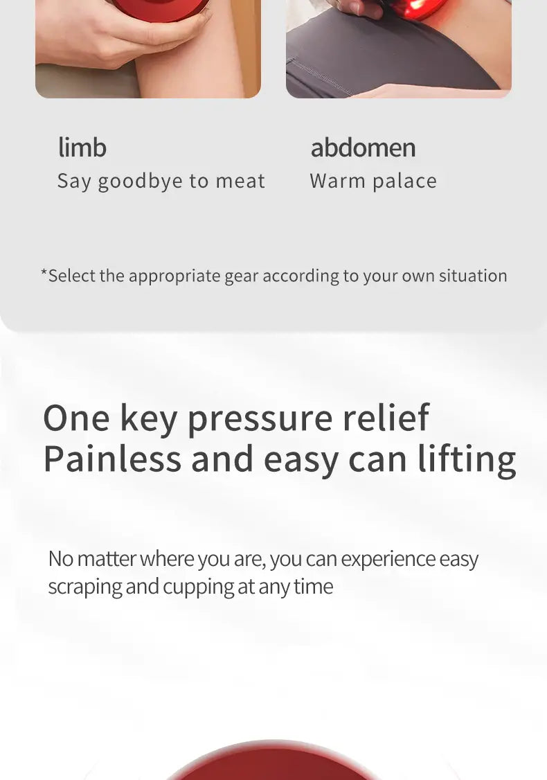 Introducing our innovative Electric Cupping Massager with Red Light therapy, designed to elevate your self-care routine. This portable and rechargeable device combines traditional cupping techniques with modern technology for an unparalleled massage experience.